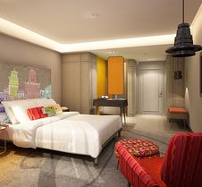 Trestjärniga ibis Styles Bangkok Khaosan Viengtai ligger mitt på Khaosan Road i Bangkoks gamla kvarter, där en karnevalliknande miljö med street food, souvenirbutiker och nöjen väntar. Hotellet erbjuder 215 unika rum i olika rumskategorier, allt från enke lrum till familjerum. Våra tjänster och faciliteter passar vare sig du är affärs- eller nöjesresenär. Här kan du både anordna produktiva möten och ta ett dopp i poolen.