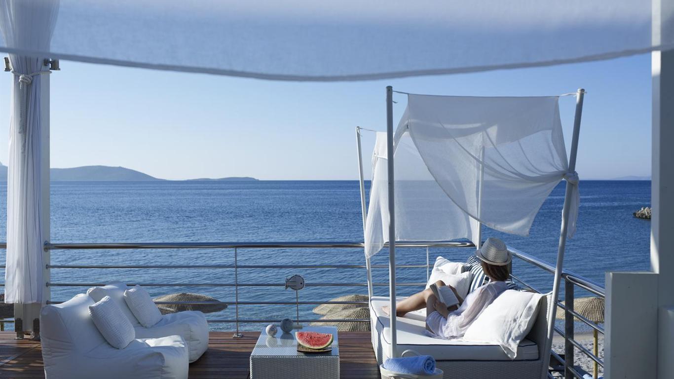 Located in Pythagoreio, this 40,000-m² complex overlooks a sheltered cove with two naturally secluded beaches. Guests enjoy free access to the tennis courts, indoor pool and fitness room. The elegant rooms have balconies looking out to the sea. Each unit, combining traditional style with contemporary design, offers air-conditioned rooms with king-size beds. 24-hour room service is offered. Proteas Blu Resort offers a wide range of deluxe services, including beach service, and free beach sun beds and umbrellas. Wellness facilities include an indoor pool. The poolside restaurant Simplicity serves Greek a la carte dishes. There is also a bar by the pool, and a beach club available. The open-air Π2 Theory gourmet restaurant serves international flavours, superbly prepared with flair, with view to the Mediterranean Sea. Pythagorio is a lovely cosmopolitan coastal town, some 12 km southern to the town of Samos. Guests can find an abundance of traditional taverns and cafés and taste the local cooking and delicacies. Parking at the hotel is free.