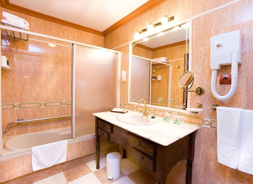 Rummen på Hotel San Agustin Beach Club är lyxiga och erbjuder platt-TV. Alla har minibar, kylskåp och ett privat badrum med badrockar.